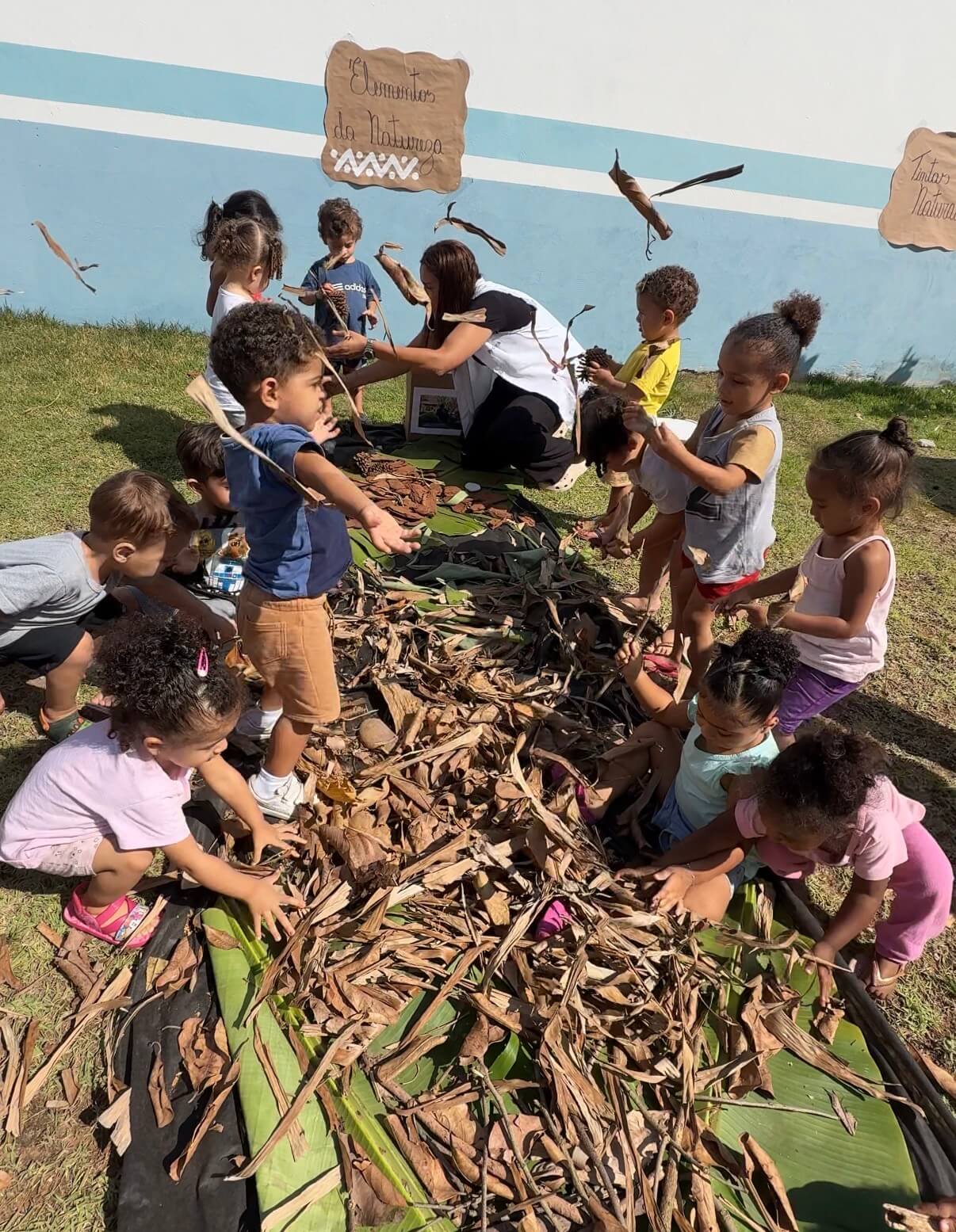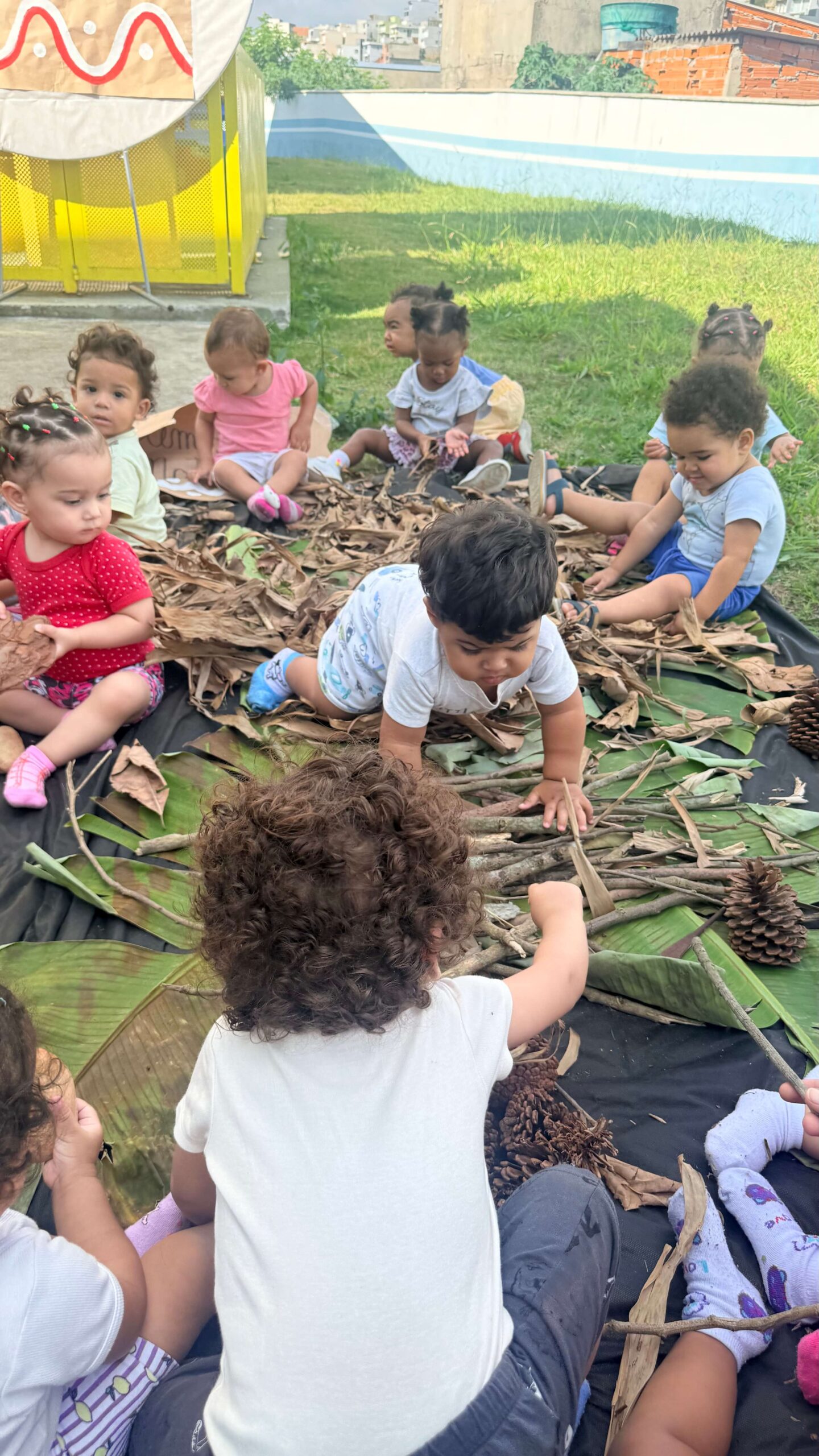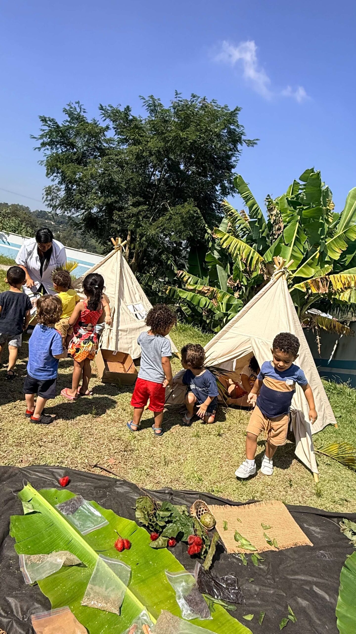 As crianças exploraram livremente esse ambiente, vivenciando experiências sensoriais únicas. Através dessa proposta rica e significativa, despertamos o interesse dos pequenos pela Cultura Indígena de maneira lúdica, curiosa e respeitosa.