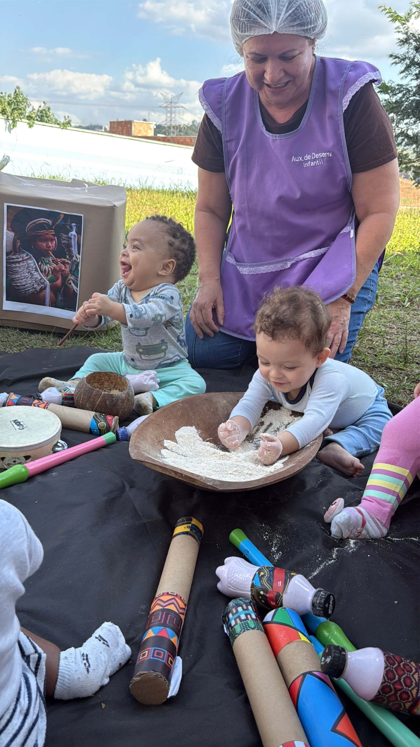 Na Cemeb Magda Aparecida Cavanha, valorizamos o respeito à diversidade e a construção de saberes desde a primeira infância. Recentemente, celebramos a Cultura dos Povos Indígenas com um território de aprendizagem enriquecedor. Este espaço foi cuidadosamente elaborado com elementos da natureza, tintas naturais, instrumentos musicais e alimentos como farinha, fubá e tapioca.